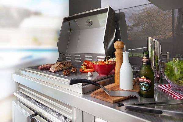 A first for the BBQ market, The Heatlie Island Gourmet Elite is designed to be dropped into a bench top made from any material, including combustible materials such as wood. It has been specially designed to be installed with minimal fuss. Before the BBQ is installed you will need to have a bench organised as the BBQ sits into the bench top. You can also purchase the Heatlie Island Gourmet cabinet which has the necessary ventilation requirements as specified by the Australian Standards and a grill plate, so you can cook the perfect steak.